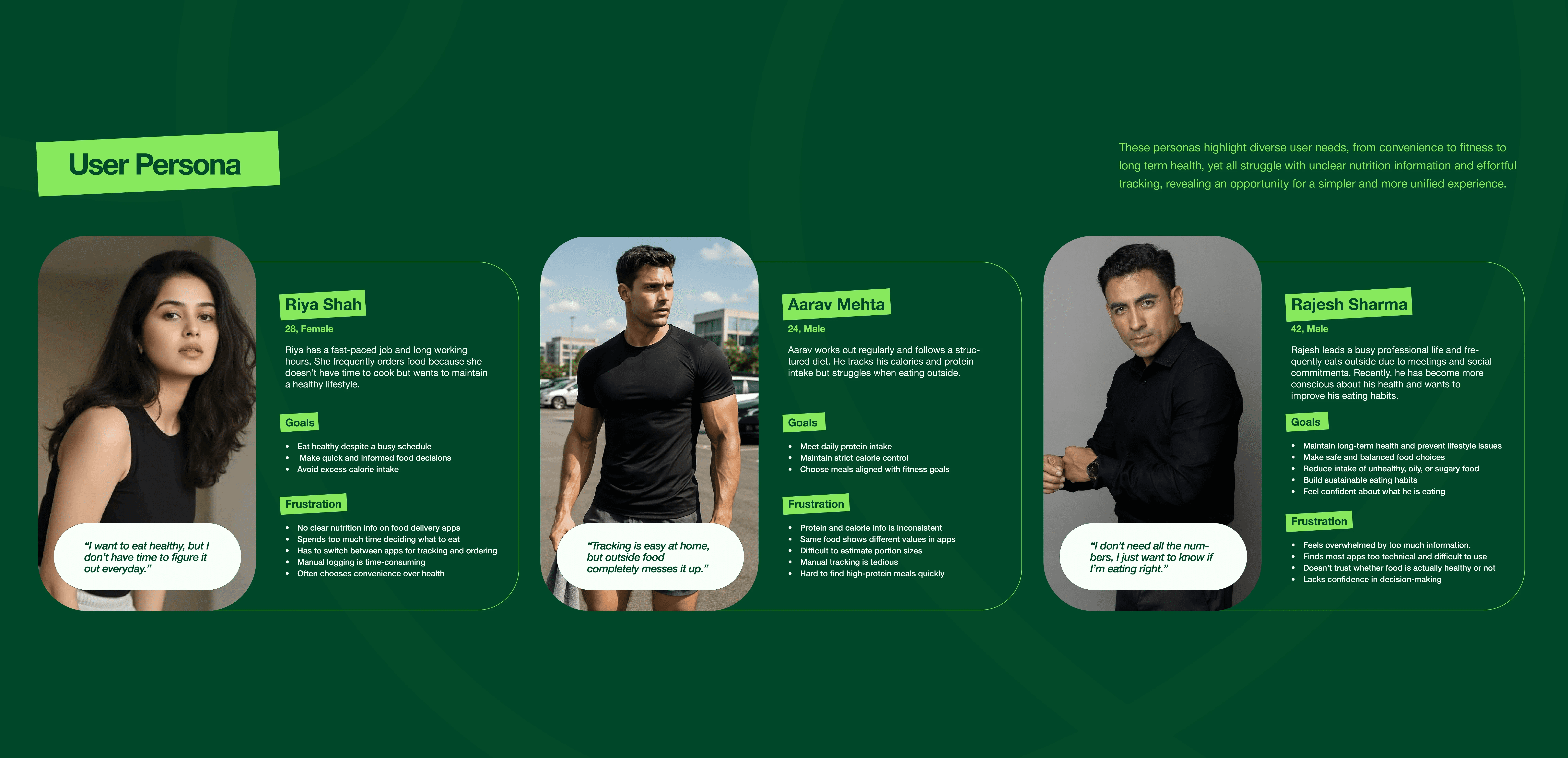 Represents active, modern urban users balancing work, fitness, and social life, highlighting a lifestyle driven by convenience yet aspiring for better health.